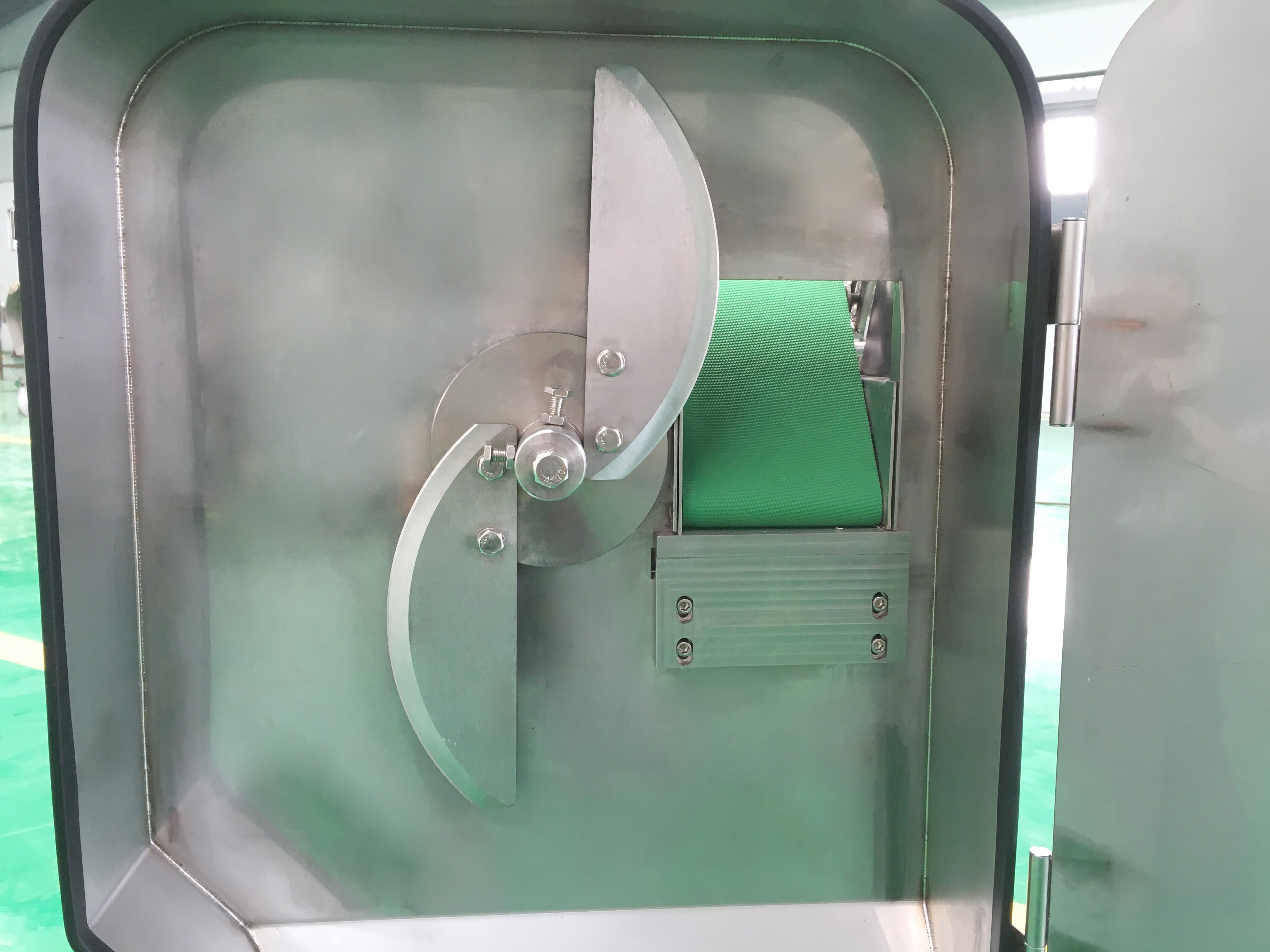 叶菜类的输送带速度和转刀速度采用变频器调节,均可独立控制。一机多用,功能强大,产量高,刀盘更换方便,操作简单,清洗方便,适合食品加工厂,餐饮行业,饭堂,餐饮配送中心使用。